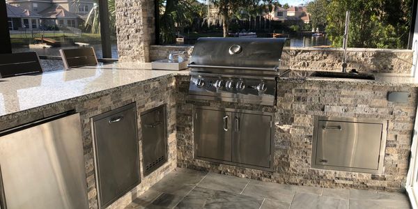 We create gathering spaces that are functional and tasteful. This could include an outdoor kitchen, fire pit, or seating area.